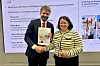 FIKK RAPPORT: Helse- og omsorgsminister Jan Christian Vestre ble overrakt årets forsknings- og innovasjonsrapporten av Renate Grüner, forskningsdirektør i Helse Vest.